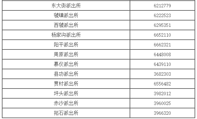 宝鸡市陈仓区辖区派出所对外联系电话号码大全表:陈仓区辖区派出所电话的区号是0917.