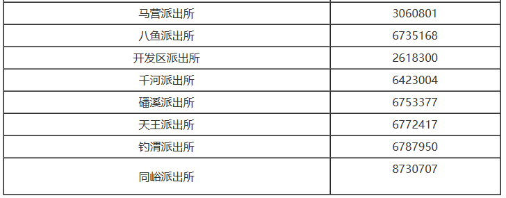 宝鸡市高新区辖区派出所对外公开电话汇总表: 高新区辖区派出所公开电话(区号:0917)