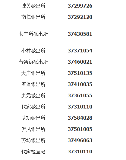 说明:关于陕西武功县辖区各派出所联系电话汇总表的信息作出免责说明,信息来源于当地主管部门公开之内容,整理转载此文是出于传递更多便民服务信息之目的。以上信息仅供参考,由于时间及其他方面的原因可能会发生变动,不准确之处请原谅!若有来源标注错误或者其它差错或侵犯了您的合法权益,请与本网站联系,我们将及时更正、删除。以上便民信息内容如有变更,以相关部门的更新内容为主。谢谢。