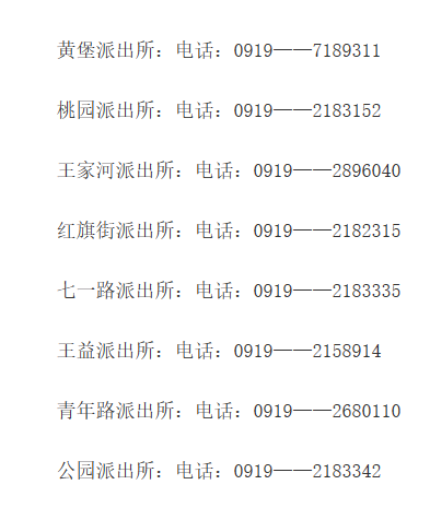 说明:关于铜川市王益区辖区派出所联系电话号码大全表的信息作出免责说明,信息来源于铜川市王益区政府网站公开之内容,整理转载此文是出于传递更多便民服务信息之目的。若有来源标注错误或者其它差错或侵犯了您的合法权益,请与本网站联系,我们将及时更正、删除。以上内容如有变更,以相关部门的更新内容为主。谢谢。