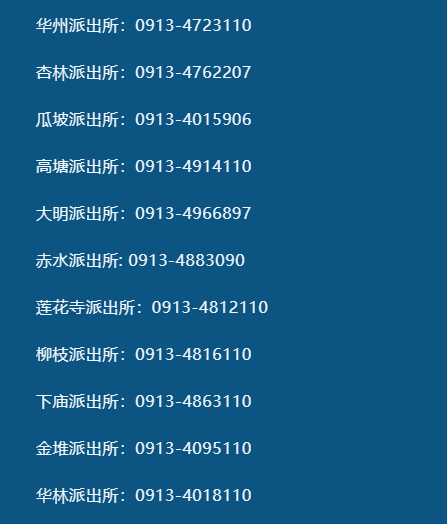渭南市华州区辖区派出所联系电话号码大全表:接受群众的报警、求助,为民排忧解难,解决群众的实际困难,积极为群众办好事、办实事。