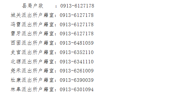 白水县各派出所户籍窗口便民服务预约电话汇总表: