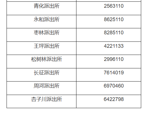 延安市永坪分局各派出所值班电话号码汇总表: