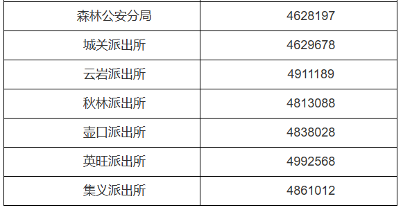 延安市宜川县辖区各派出所对外公开电话汇总表: