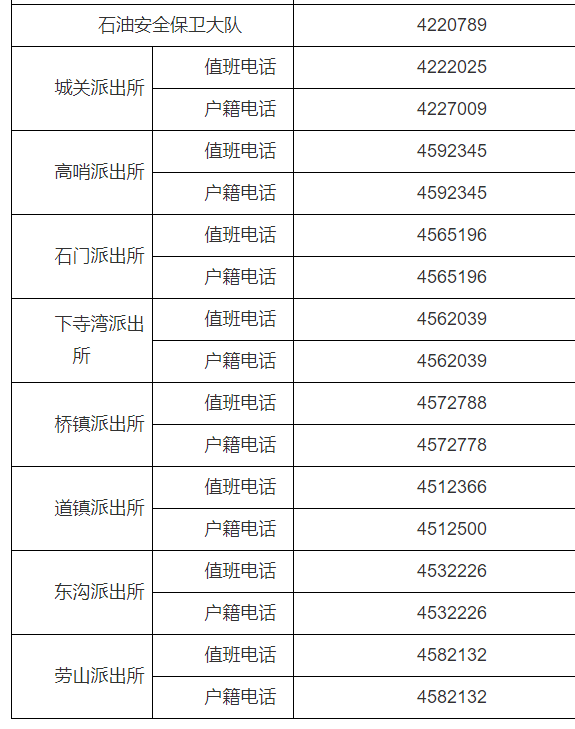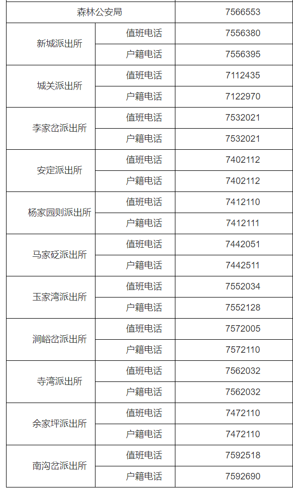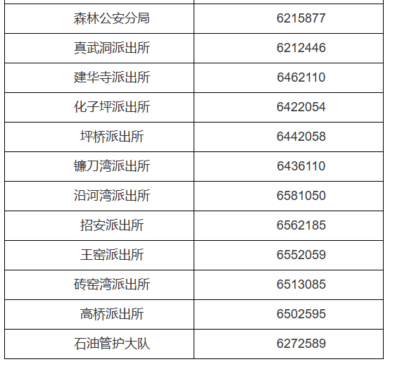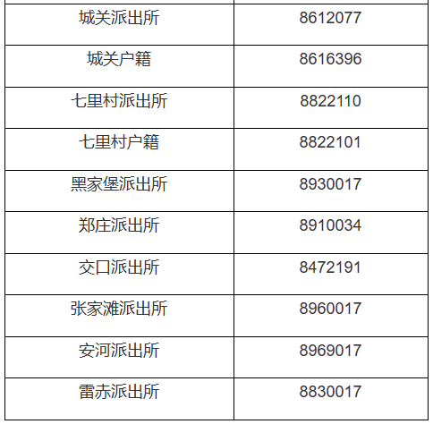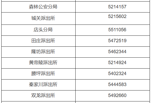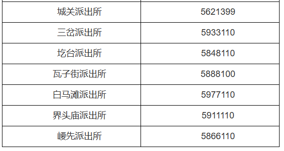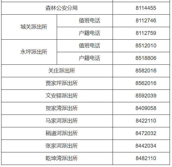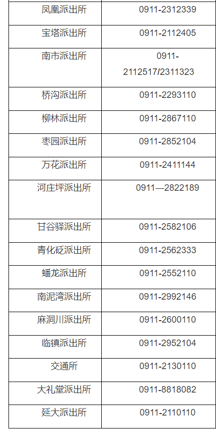 陕西延安市延河分局各派出所对外服务电话公开信息大全表: