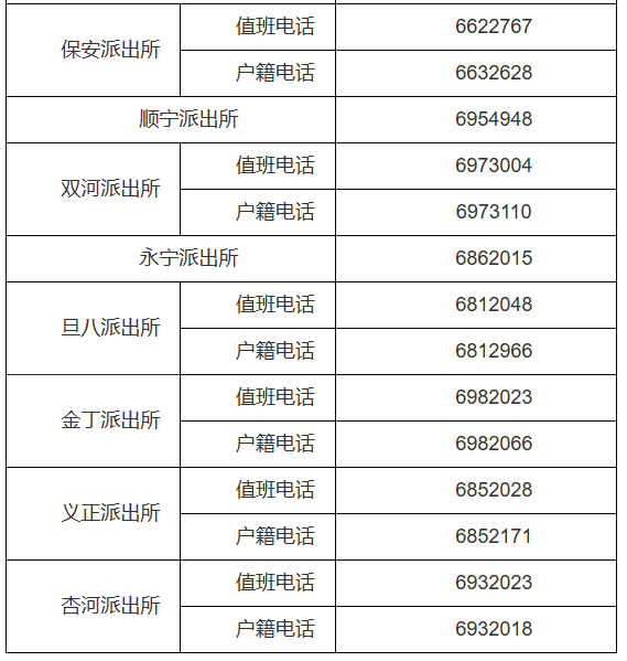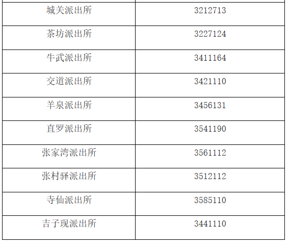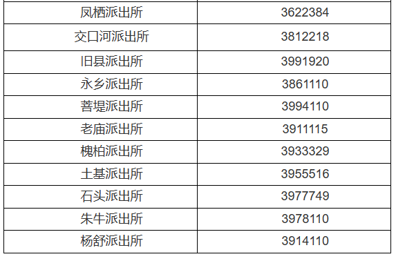 陕西延安市富县辖区各派出所对外服务电话公开信息大全表: