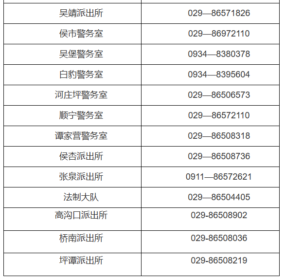 陕西延安市洛川县辖区各派出所对外服务电话公开信息大全表:
