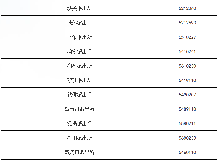 安康市汉阴县辖区各派出所公开电话号码汇总表:电话区号是0915.