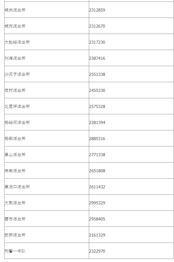 商洛市商州区辖区派出所公开联系电话汇总表:商州区各派出所公开电话(区号:0914)