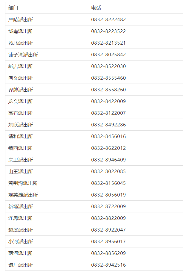 便民电话黄页:威远县辖区派出所联系电话号码大全表。110是啥?110是报警电话号码,110电话除负责受理刑事、治安案件外还接受群众突遇的个人无力解决的紧急危难求助等。但是,除了通过110来寻求帮助,我们还有一个方法可以得到帮助,就是直接联系辖区派出所。现在每个派出所也有24小时值班电话,专门对外联系。为进一步方便群众,提高处警速度和办事效率,现将威远县辖区各派出所联系电话公布给大家,大家可以按照求助地点,轻轻松松让派出所人员更快一步赶到你的身边。