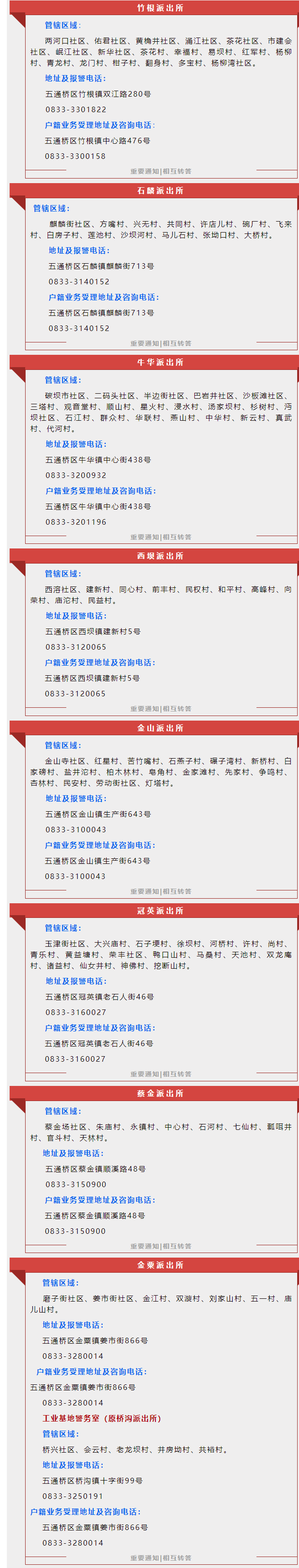 乐山市五通桥区各派出所报警电话、户籍电话、办公地址及管辖区域大全表:为了更好的乐山五通桥区经济发展和人民生活,进一步转变作风,提高履职水平,提升人民群众满意度,现将乐山市五通桥区辖区各个派出所电话及地址整理并公开。