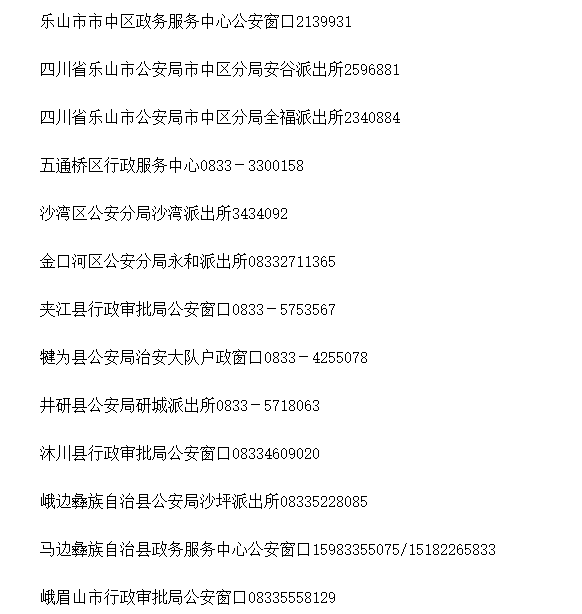 提示:关于乐山市区县辖区居民身份证异地受理点咨询联系电话大全表的信息作出免责提示,此信息来源于乐山市政府主管机构网站公开之内容,整理转载此文是出于传递更多便民服务信息之目的。若有来源标注错误或者其它差错或侵犯了您的合法权益,请与本网站联系,我们将及时更正、删除,谢谢。