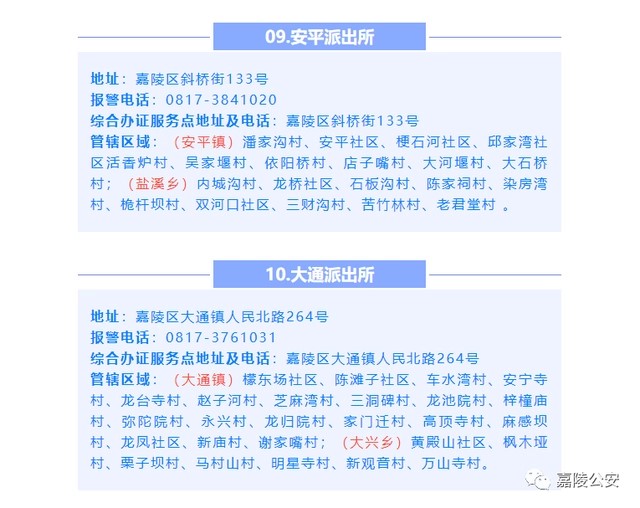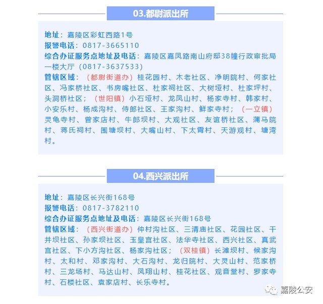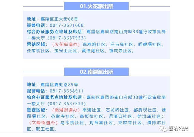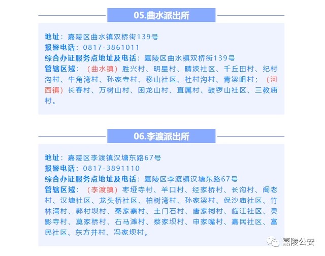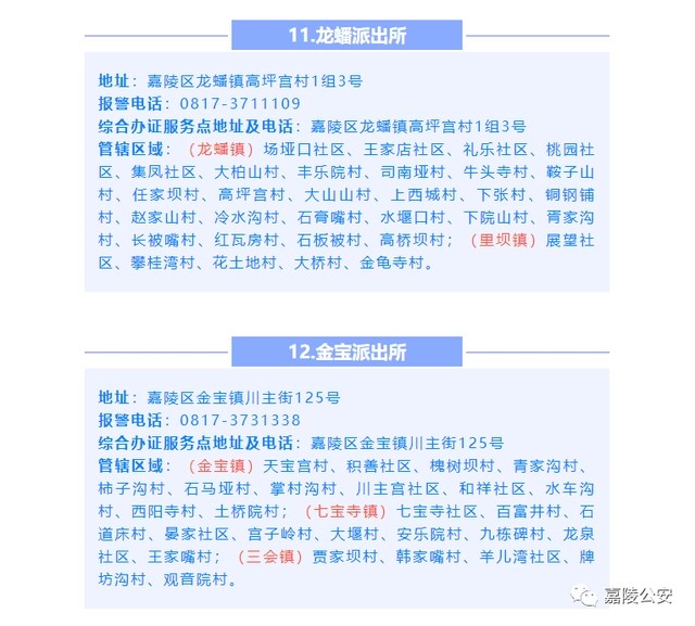 南充市嘉陵区辖区派出所地址、报警电话和管辖区域信息大全表: