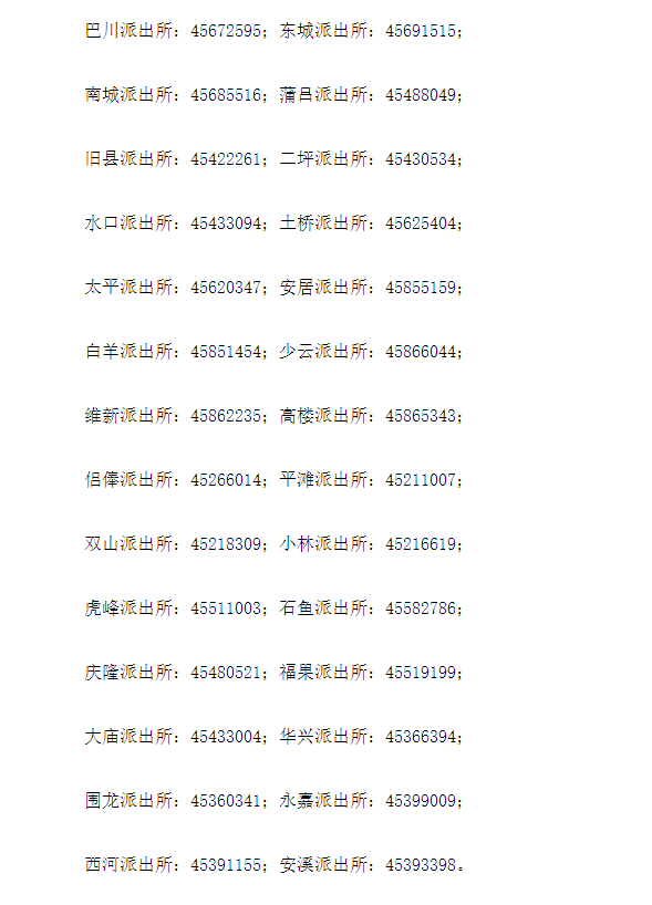 重庆市铜梁区辖区派出所户籍窗口咨询预约电话号码列表:重庆市铜梁区辖区派出所户籍窗口咨询预约电话号码的区号为023.