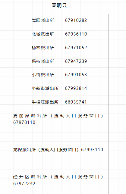 昆明市石林县、崇明县、宜良县辖区派出所户政窗口咨询电话大全表: