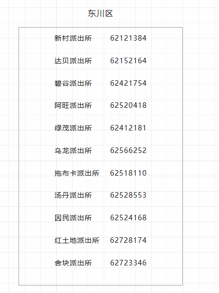 昆明东川区各派出所户政户籍窗口电话汇总表: