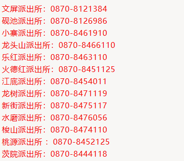 昭通市鲁甸县各派出所联系电话汇总表: