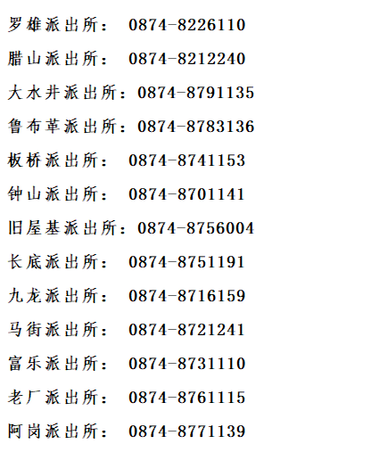 鲁布革派出所:0874-8783136