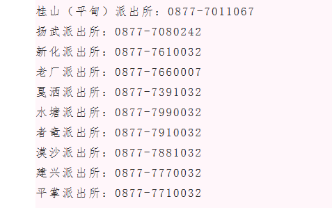 玉溪市新平县辖区派出所联系电话号码汇总表: