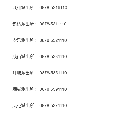免责声明:关于楚雄州牟定县辖区派出所报警值班电话号码汇总表的信息作出免责声明,此信息来源于牟定县政府网站公开之内容,整理转载此文是出于传递更多便民服务信息之目的。若有来源标注错误或者其它差错或侵犯了您的合法权益,请与本网站联系,我们将及时更正、删除,谢谢。