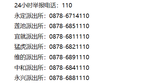 楚雄州永仁县辖区派出所值班电话号码列表: