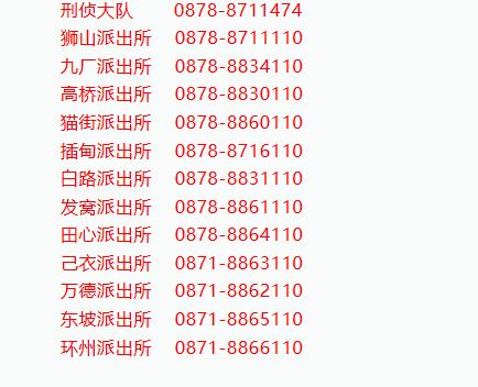 楚雄州武定县辖区派出所值班电话号码大全表: