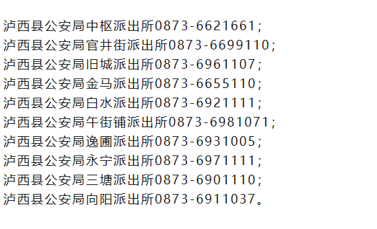 泸西县官井街派出所0873-6699110;