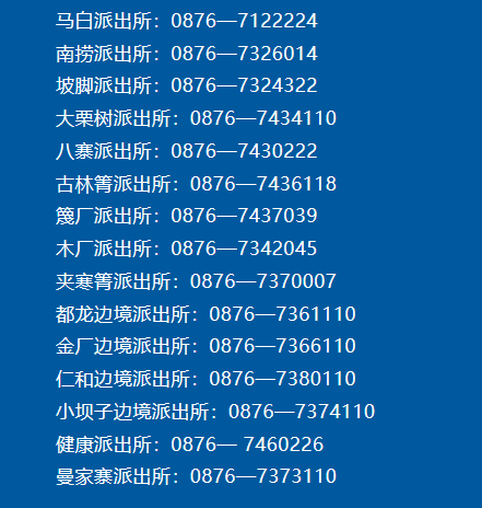 马关县马白派出所:0876—7122224