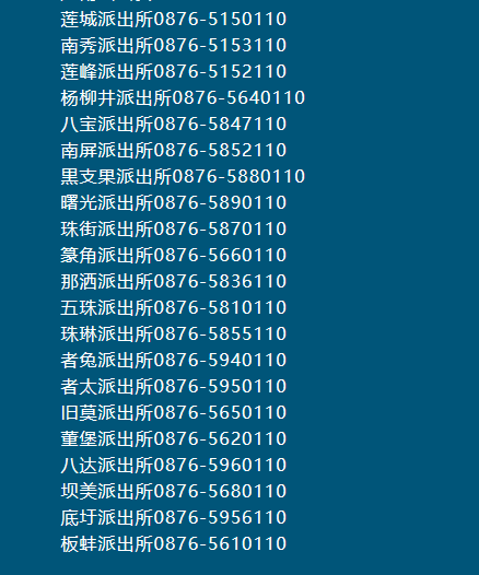 文山州广南县辖区各派出所值班报警电话号码一览表: