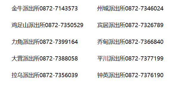 提示:关于大理州宾川县辖区派出所值班电话汇总表的信息作出免责提示,信息来源于当地主管部门公开之内容,整理转载此文是出于传递更多便民服务信息之目的。若有来源标注错误或者其它差错或侵犯了您的合法权益,请与本网站联系,我们将及时更正、删除。以上内容如有变更,以相关部门的更新内容为主。谢谢。