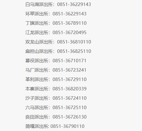 镇宁县扁担山派出所:0851-36825110