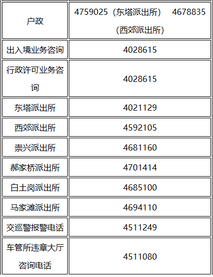 银川市西夏区辖区派出所值班报警电话号码汇总表: