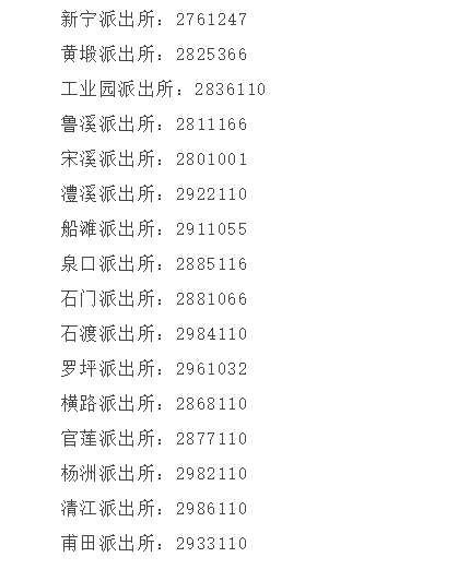 九江市武宁县辖区派出所值班电话号码大全表: