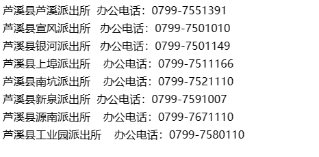 芦溪县芦溪派出所 办公电话:0799-7551391