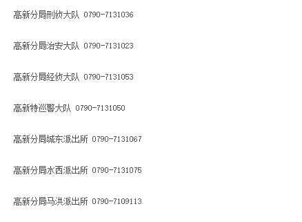 声明:关于新余市高新区各派出所、各大队联系电话汇总表的信息作出免责声明,此信息来源于新余市高新区政府网站公开之内容,整理转载此文是出于传递更多便民服务信息之目的。若有来源标注错误或者其它差错或侵犯了您的合法权益,请与本网站联系,我们将及时更正、删除,谢谢。