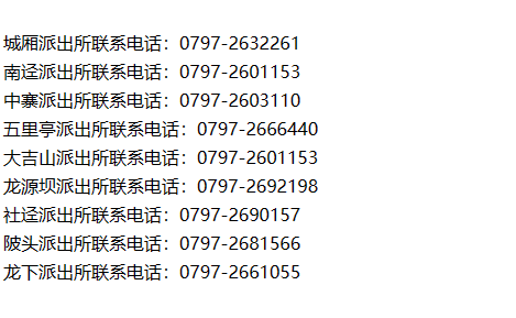 赣州市全南县辖区派出所联系电话号码汇总表: