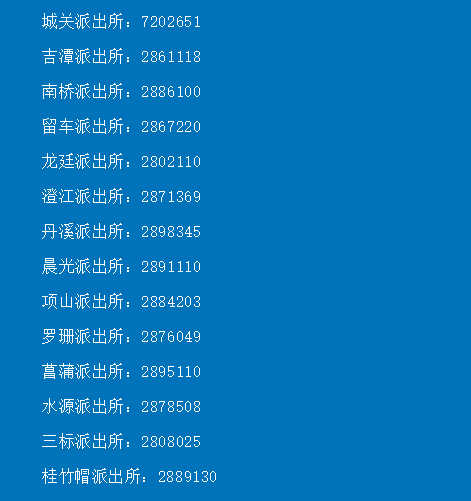 赣州市寻乌县辖区派出所户籍窗口咨询联系电话大全:电话号码区号为0797.