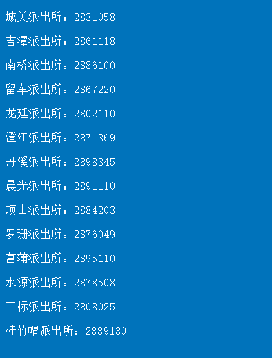 提示:关于赣州市寻乌县各派出所报警值班电话号码汇总表的信息作出免责提示,信息来源于当地主管部门公开之内容,整理转载此文是出于传递更多便民服务信息之目的。若有来源标注错误或者其它差错或侵犯了您的合法权益,请与本网站联系,我们将及时更正、删除。以上内容如有变更,以相关部门的更新内容为主。谢谢。