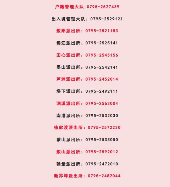 上高县各派出所户籍窗口和出入境大队办事窗口咨询电话汇总表
