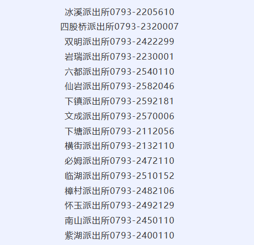 提示:关于上饶市玉山县各户籍派出所咨询服务电话大全的信息作出免责提示,信息来源于当地主管部门公开之内容,整理转载此文是出于传递更多便民服务信息之目的。若有来源标注错误或者其它差错或侵犯了您的合法权益,请与本网站联系,我们将及时更正、删除。以上内容如有变更,以相关部门的更新内容为主。谢谢。
