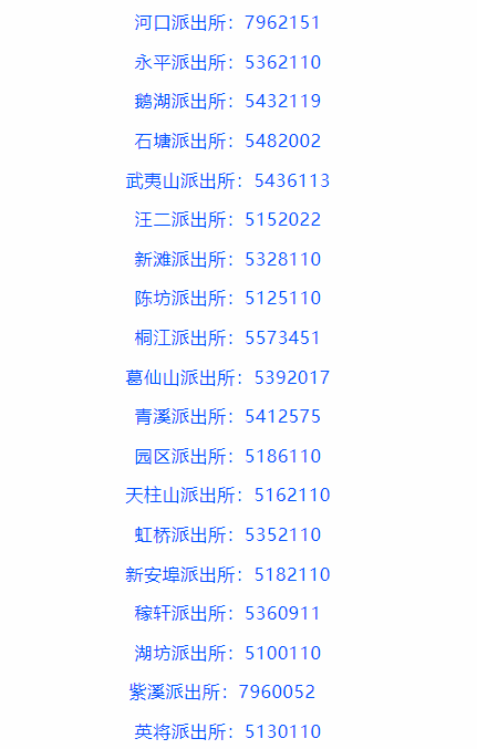 上饶市铅山县各派出所户籍业务咨询联系电话大全: