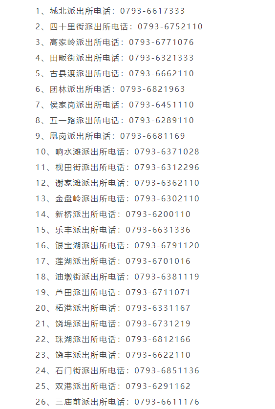 提示:关于上饶市鄱阳县辖区派出所户籍窗口咨询联系电话大全表的信息作出免责提示,信息来源于当地主管部门公开之内容,整理转载此文是出于传递更多便民服务信息之目的。若有来源标注错误或者其它差错或侵犯了您的合法权益,请与本网站联系,我们将及时更正、删除。以上内容如有变更,以相关部门的更新内容为主。谢谢。
