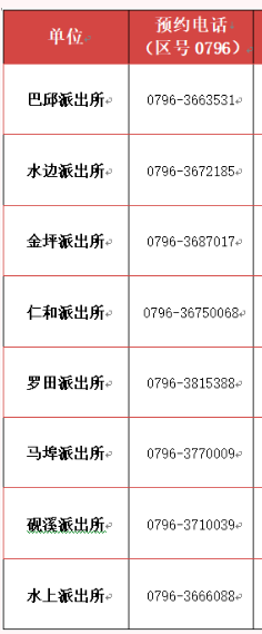 吉安市峡江县各派出所户籍业务咨询预约电话号码列表: