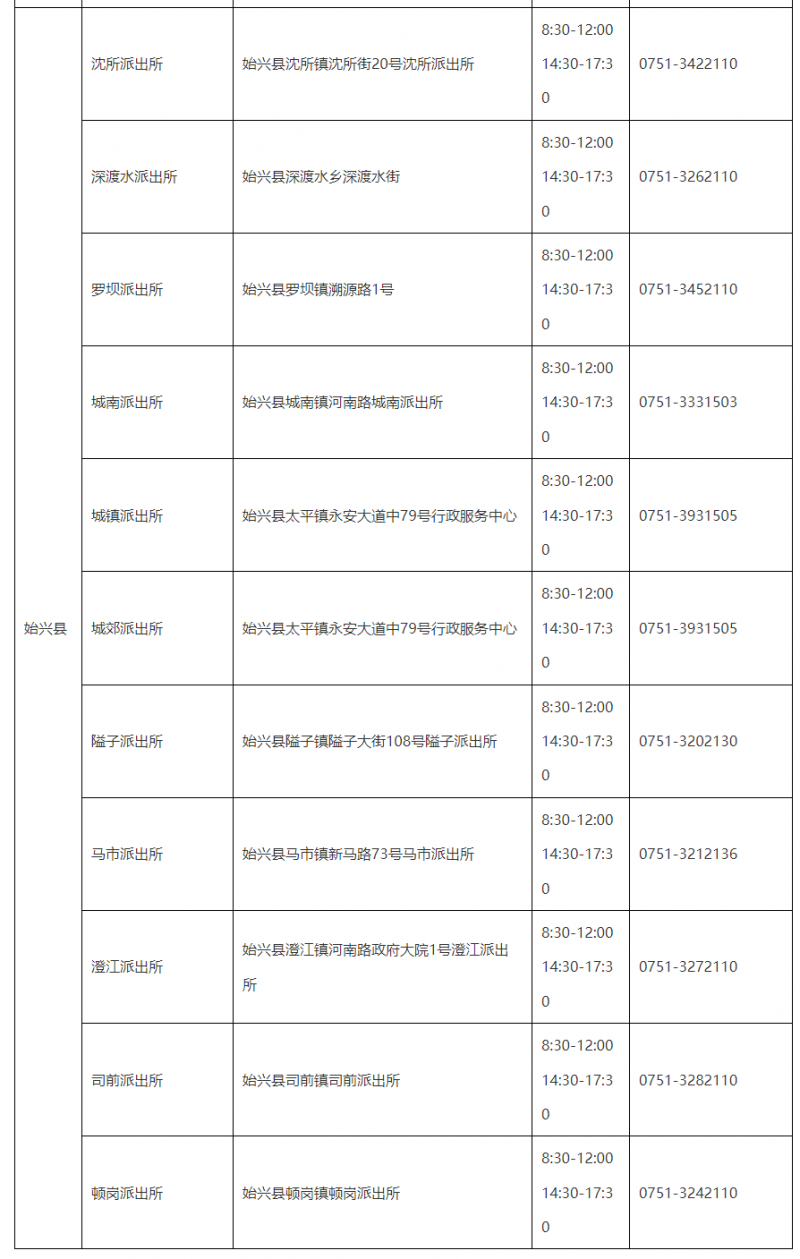 韶关市始兴县户政受理派出所窗口咨询电话和办理地址大全表:为了更好地服务人民群众,进一步转变作风,提高履职水平,提升人民群众满意度,现将韶关市始兴县户政业务受理点(派出所户政窗口)联系电话及地址整理公开如下。