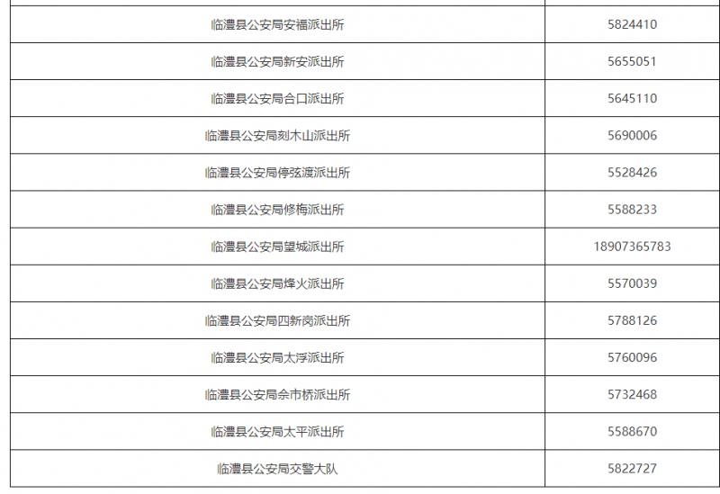 常德市临澧县各派出所便民服务电话大全表:电话号码的区号为0736.