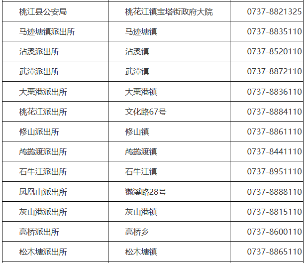 益阳市桃江县辖区派出所值班电话大全表:
