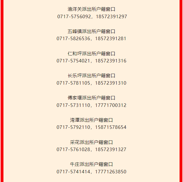 宜昌市五峰县辖区派出所户籍业务窗口咨询联系电话汇总表: