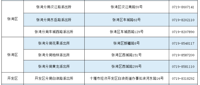 十堰市张湾区各派出所户籍窗口咨询电话和窗口地址大全表: