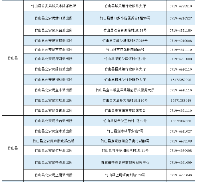 十堰市竹山县各派出所户籍窗口咨询电话和窗口地址大全表: