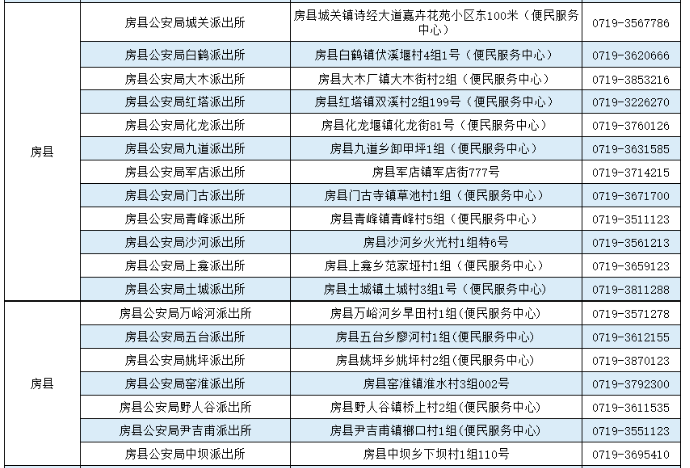 十堰市房县各派出所户籍窗口咨询电话和窗口地址大全表: